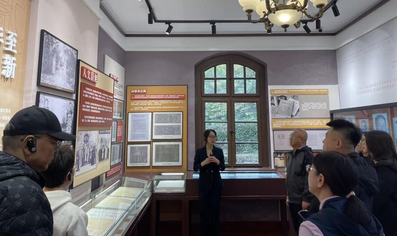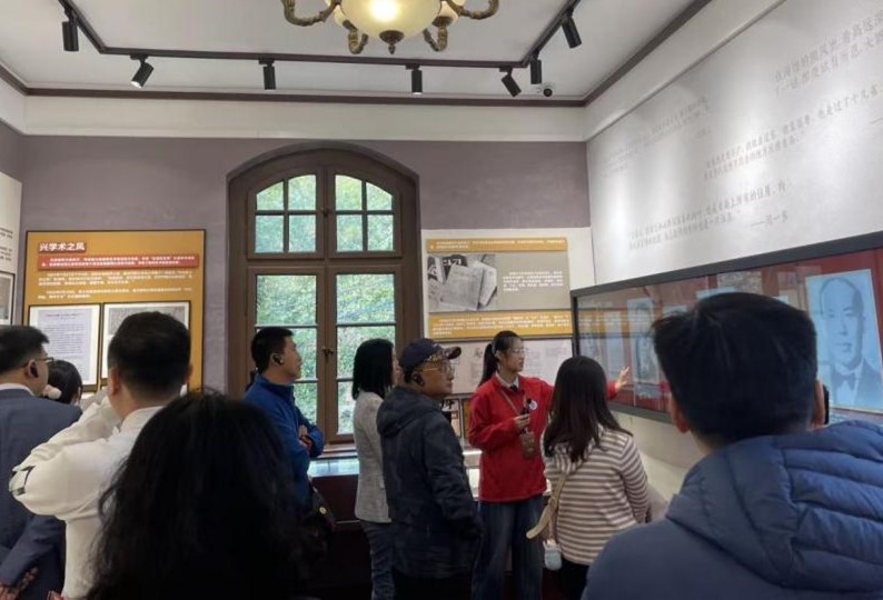 10月29日,青岛市社会主义学院、九三学社广州市委2025年骨干社员培训班分批次参观一多楼,讲解员许可、朱佳瑶。