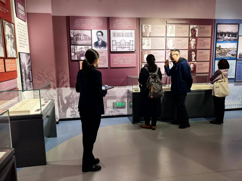 11月12日,江苏开放大学校长张迎春等参观校史馆,讲解员陈晓菲。