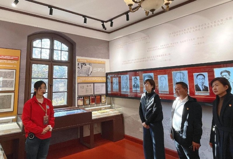 11月21日,市南区老干部局工作人员参观一多楼,讲解员许可。