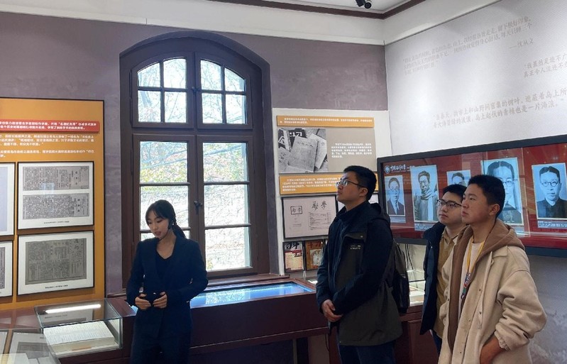 11月29日,参加清华大学水木书院-中国海洋大学水产学院共联共建活动嘉宾参观一多楼,讲解员朱佳瑶。