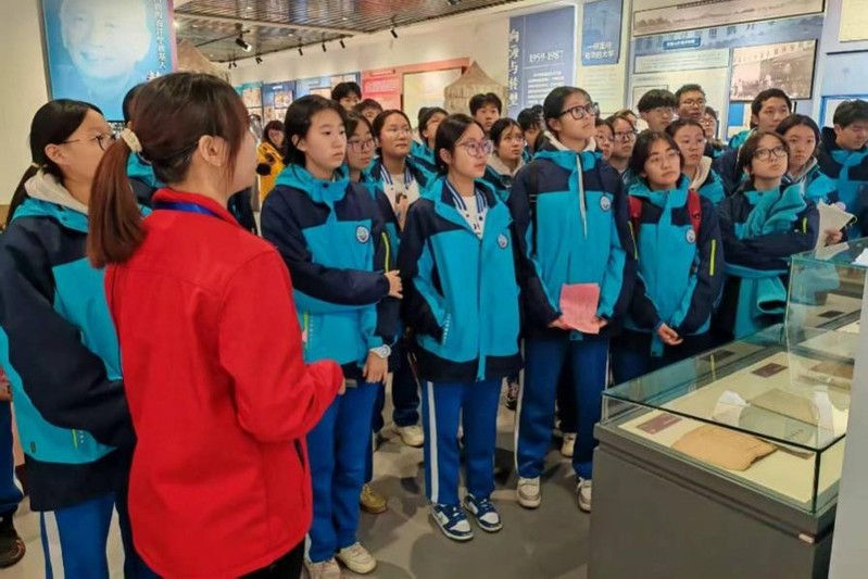 12月3日,山东省青岛第三十九中学生参观校史馆,讲解员包丰瑜。