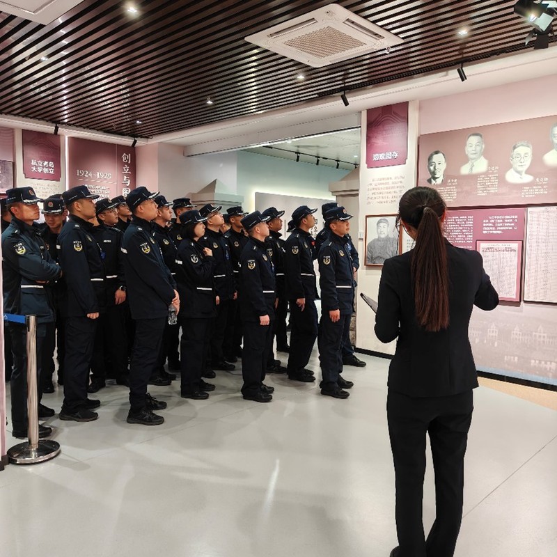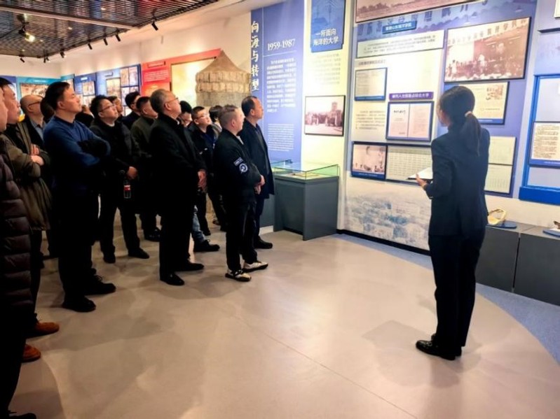 12月10日,山东海警局维权执法培训班学员参观校史馆,讲解员陈晓菲。