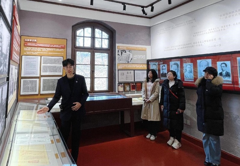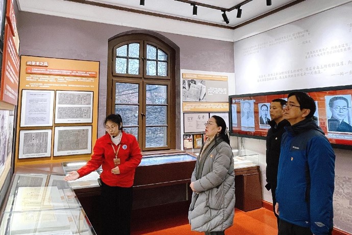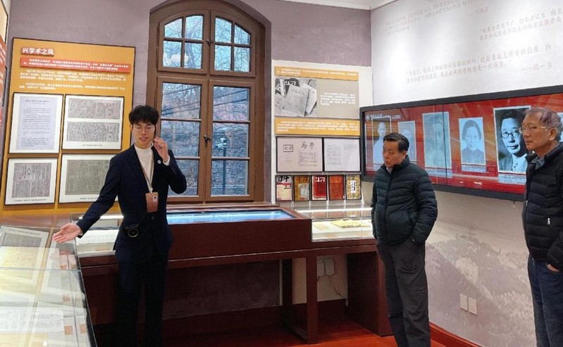 12月11日,山东财经大学党委书记查玉喜一行参观一多楼,讲解员董雯千。
