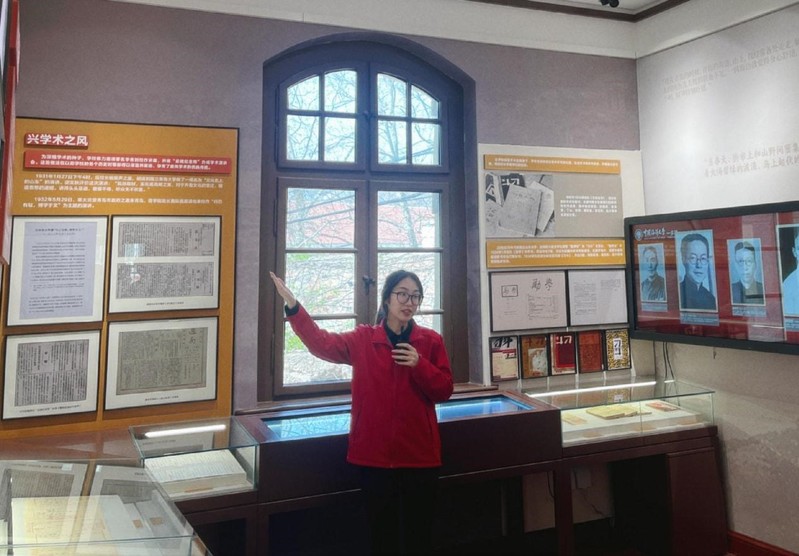 4月1日,青岛市社会主义学院、青岛市工商联民营经济人士培训班学员分批次参观一多楼,讲解员朱佳瑶。