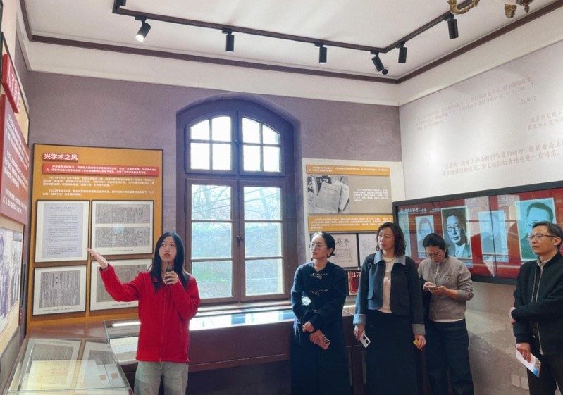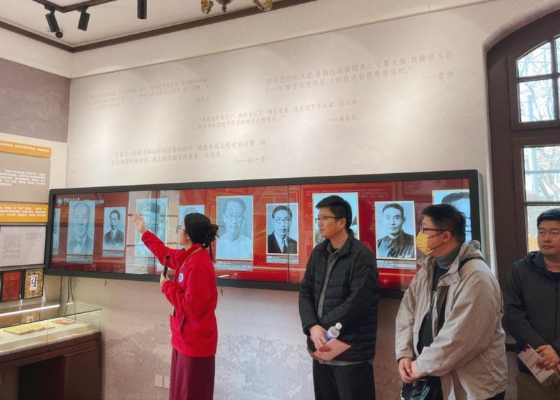 4月1日,青岛市社会主义学院、民革青岛市委员会2026新党员培训班学员分批次参观一多楼,讲解员李瑾、张艺菲。