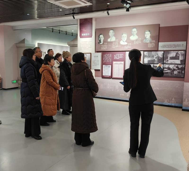 1月23日,江苏省产业技术研究院、长三角国家技术创新中心首席专家、管委会委员罗本进一行参观校史馆,讲解员陈晓菲。
