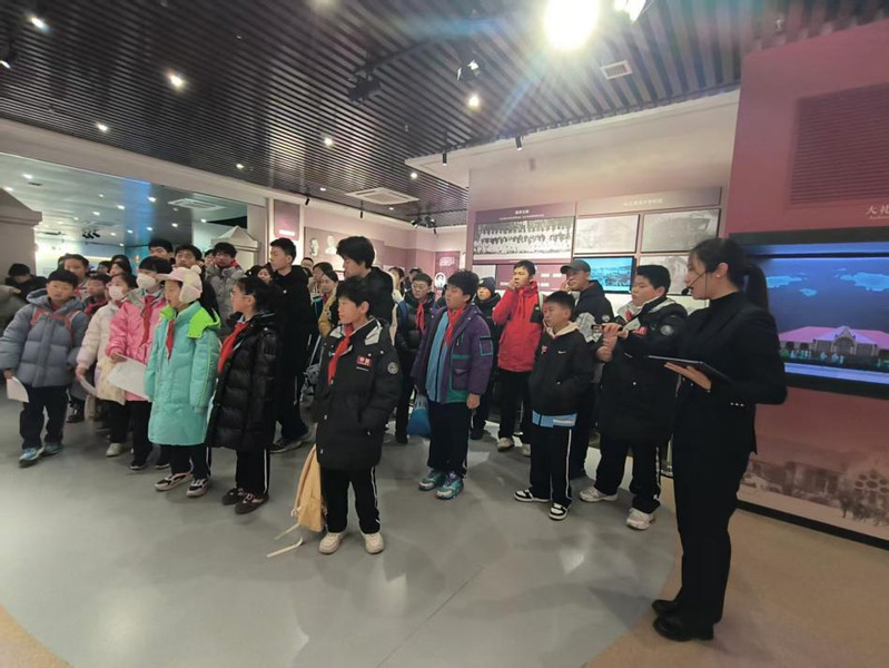 1月30日,青岛市崂山区育才学校组织师生参观校史馆,讲解员陈晓菲。
