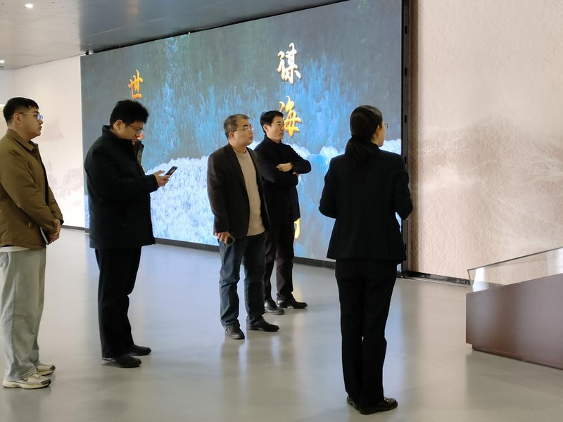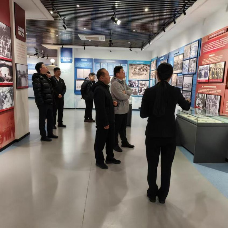 3月20日,山东出版集团有限公司党委书记、董事长刘文强一行参观校史馆,讲解员陈晓菲。