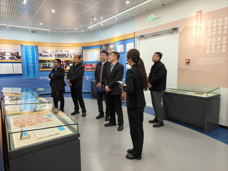 3月26日,河北省教育考试院副院长、党委委员刘山一行参观校史馆,讲解员陈晓菲。